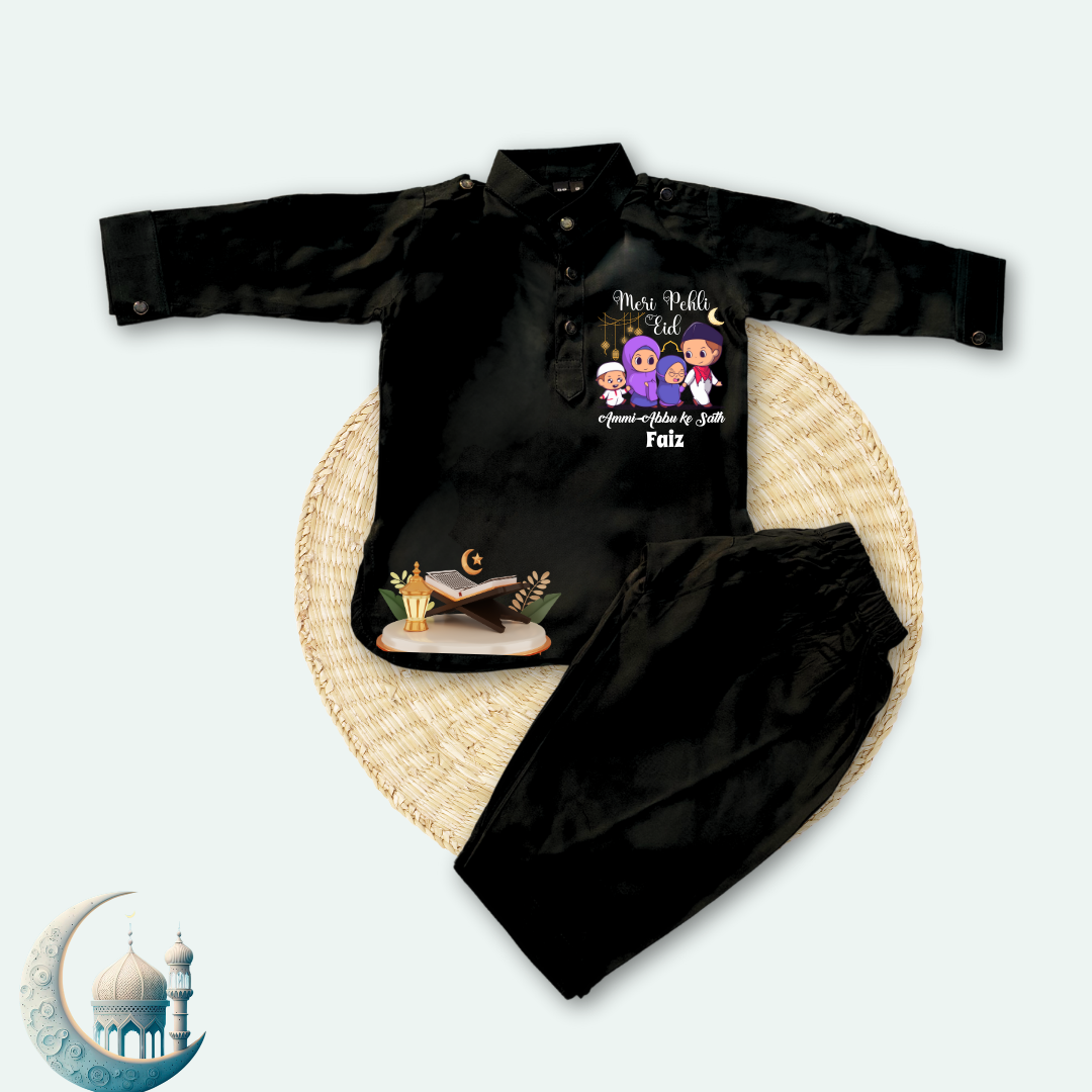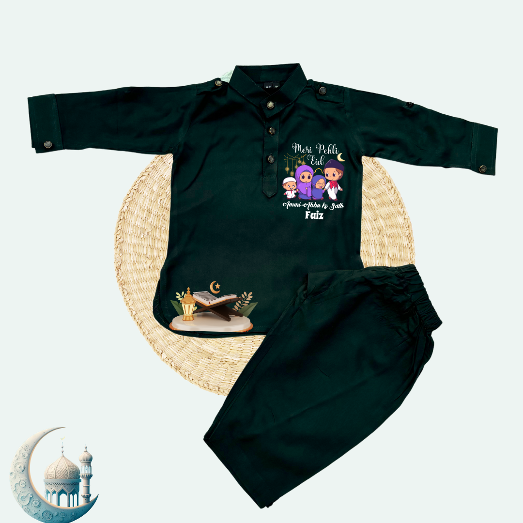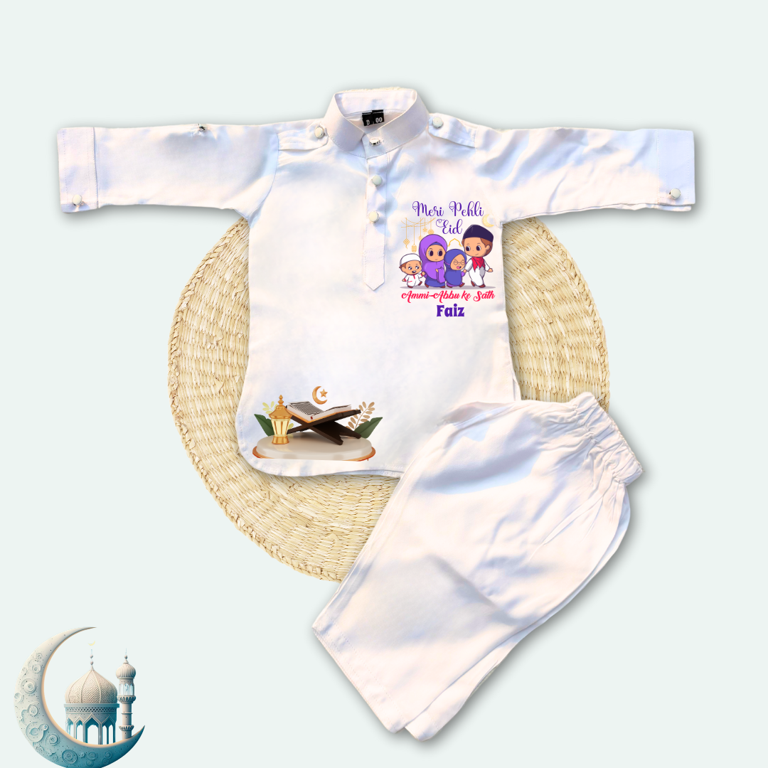 Celebrate Eid in style with our Customised Baby Pathani Set, a perfect blend of tradition and comfort for your little one. Made from 100% premium quality cotton, this set ensures a soft and gentle touch on your baby's delicate skin, keeping them comfortable throughout the day.