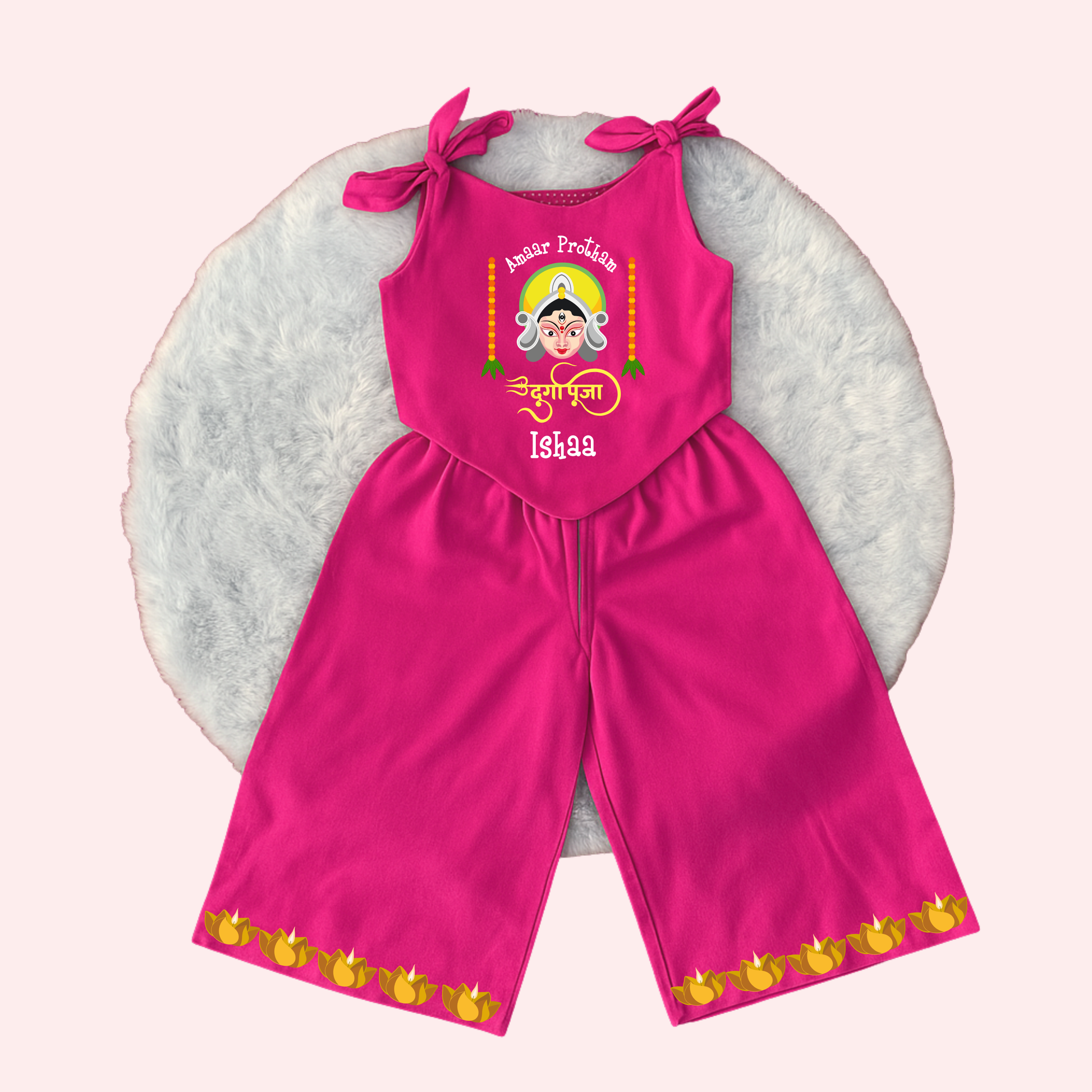 Celebrate Durga puja with this Co-ord Set, designed for girls in soft rayon-cotton fabric that ensures comfort and breathability.