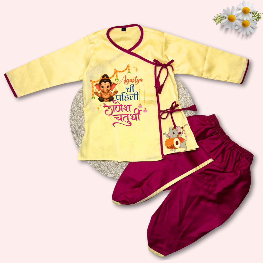Celebrate this Ganesh Chaturthi with our exclusive Baby Kurta Set. Crafted with premium soft cotton fabric, this outfit ensures your little one stays comfortable and stylish throughout the festivities.