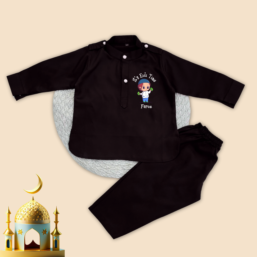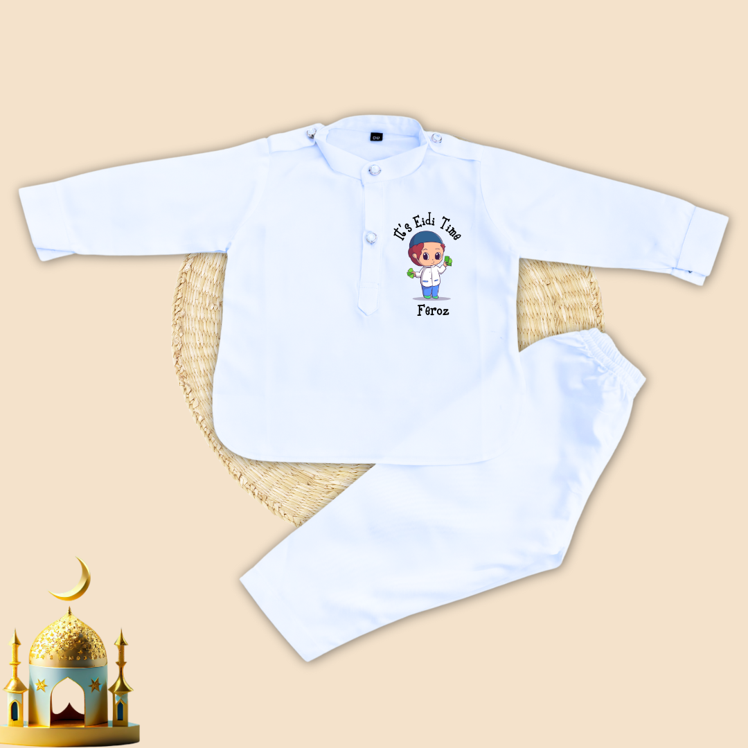 Celebrate Eid in style with our Customised Baby Pathani Set, a perfect blend of tradition and comfort for your little one. Made from 100% premium quality cotton, this set ensures a soft and gentle touch on your baby's delicate skin, keeping them comfortable throughout the day.