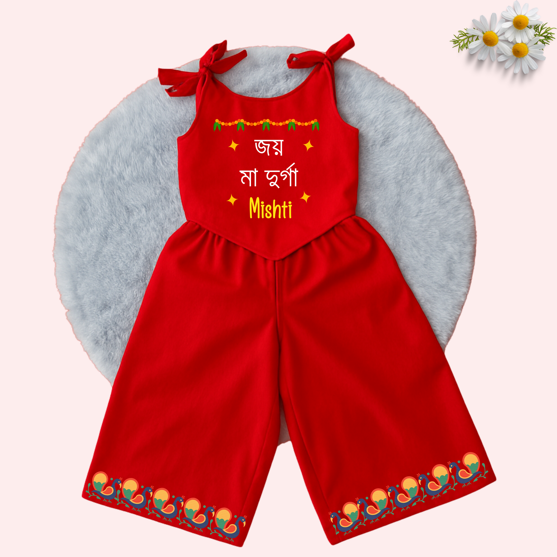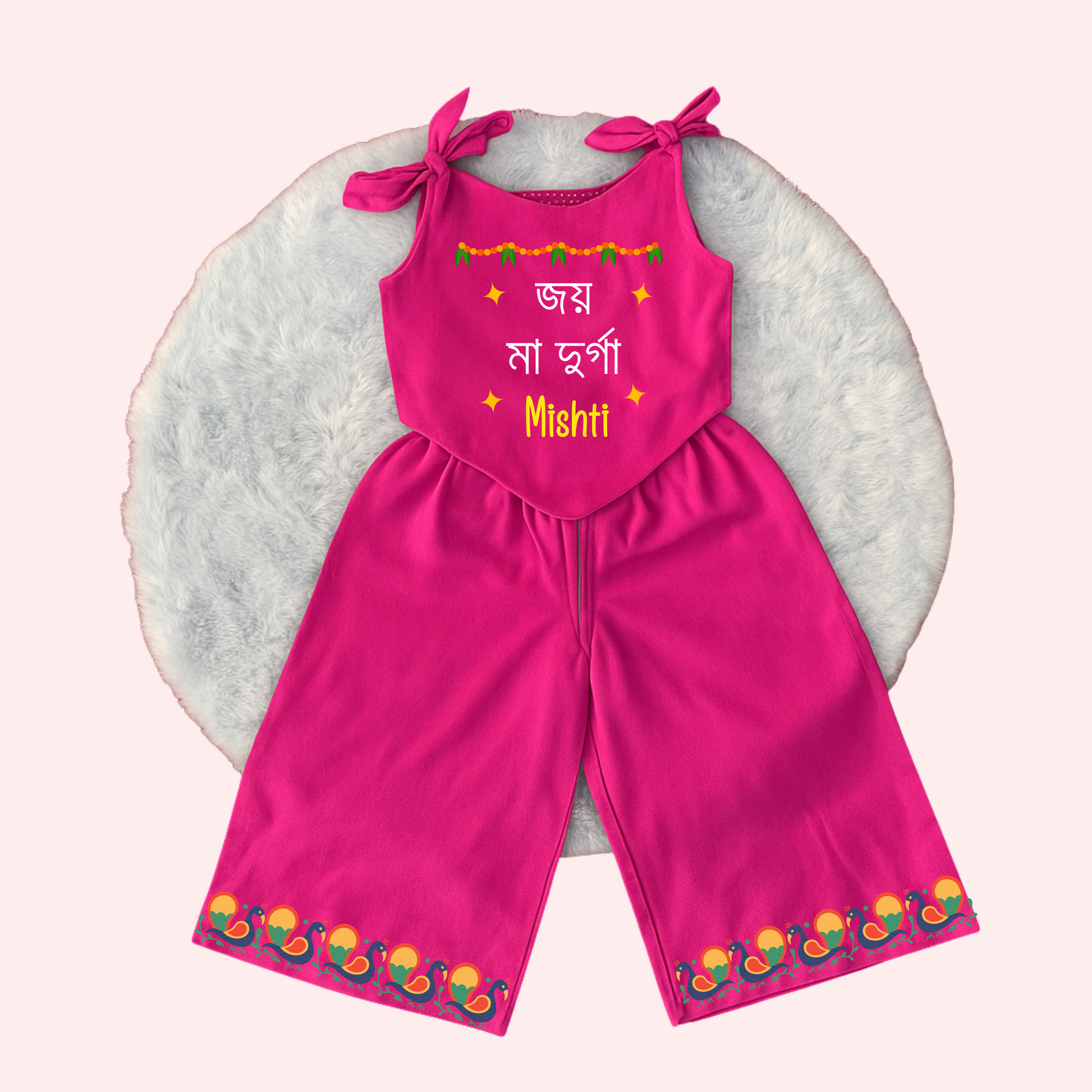 Celebrate Durga puja with this Co-ord Set, designed for girls in soft rayon-cotton fabric that ensures comfort and breathability.
