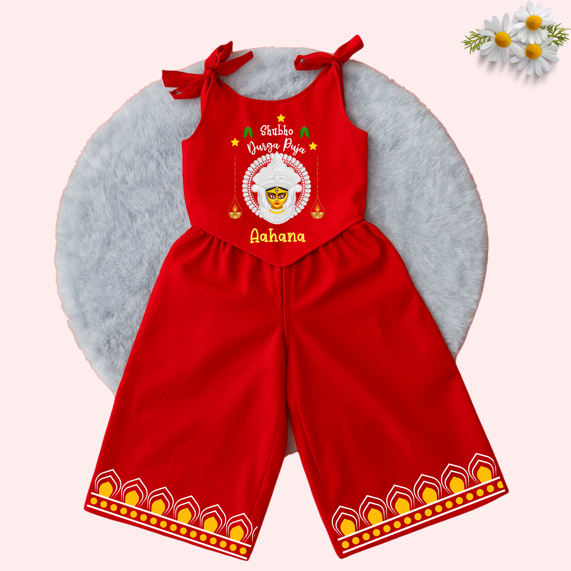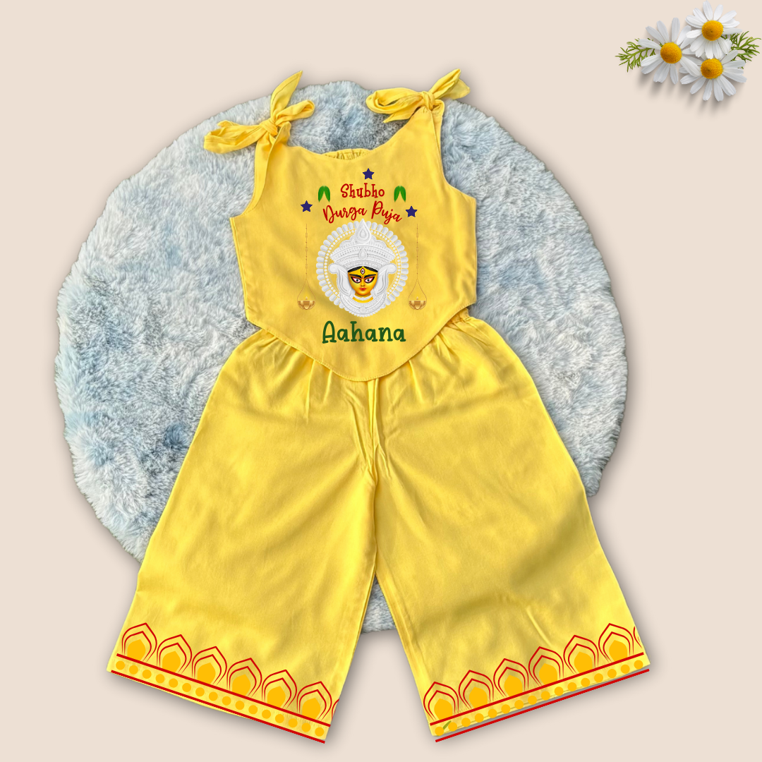 Celebrate Durga Puja with this Co-ord Set, designed for girls in soft rayon-cotton fabric that ensures comfort and breathability.
